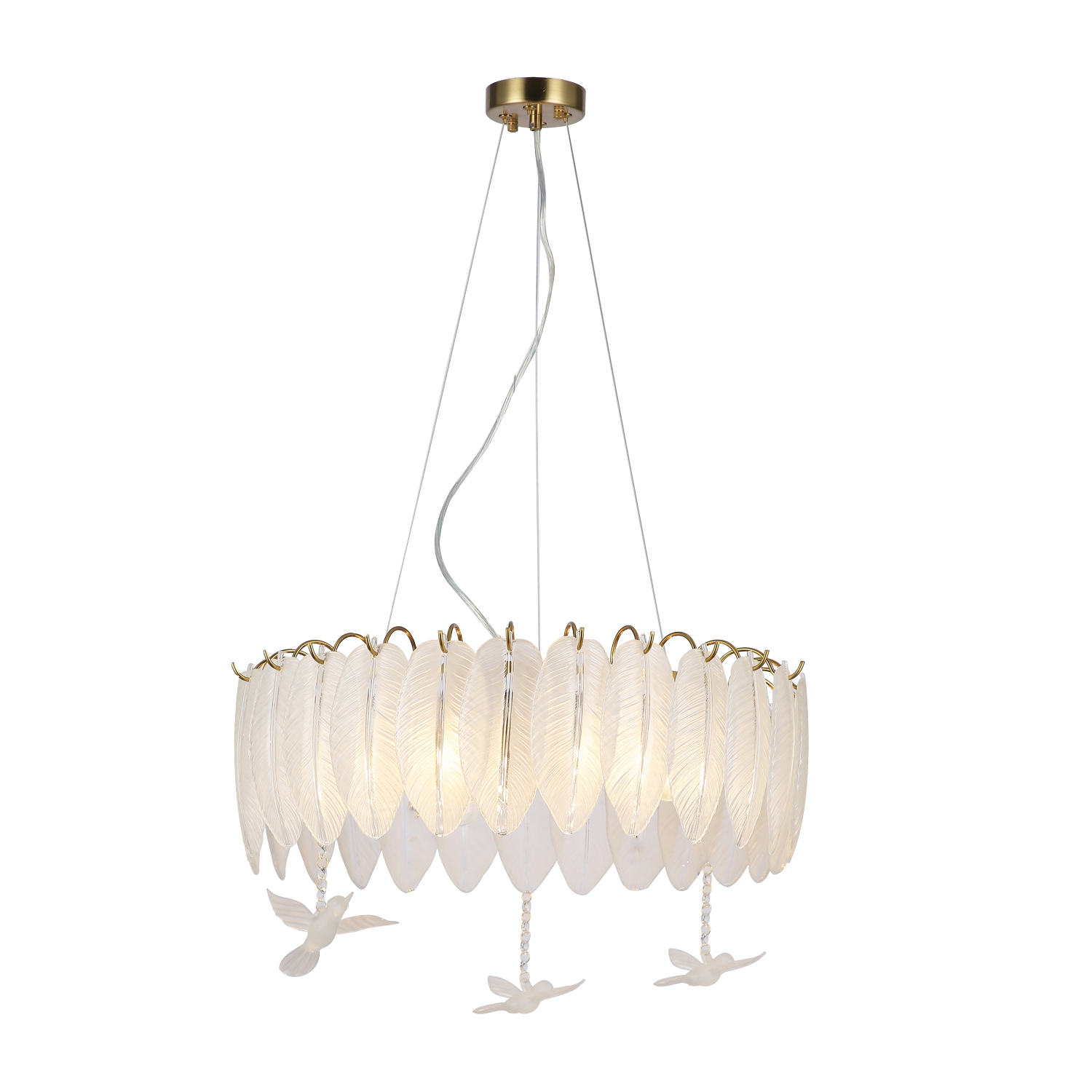 Коллекция Philomela создана в стиле флористики из белого полупрозрачного стекла. Каркас цвета меди. Декоративный элемент – парящая стеклянная птичка. Каждый лепесток обладает крупным размером и изготавливается вручную. Это изысканная нежная и воздушная коллекция украсит гостиную или спальню в стиле неоклассики.
