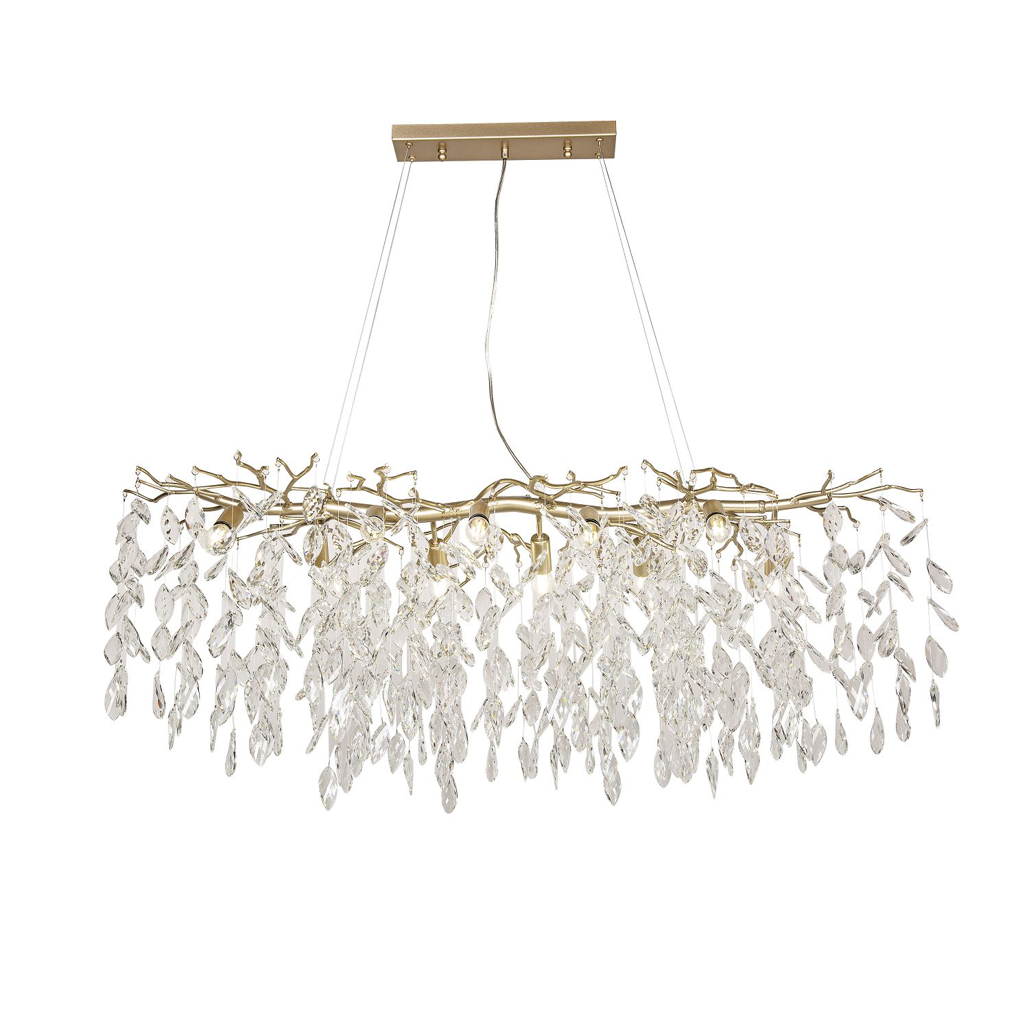 Коллекция Brillo выполнена в стиле современной флористики. Светильники декорированы нитями из кристаллов в форме листьев дерева. Каркас выполнен в цвете матового золота. Эти светильники созданы, чтобы стать ярким акцентом интерьера.