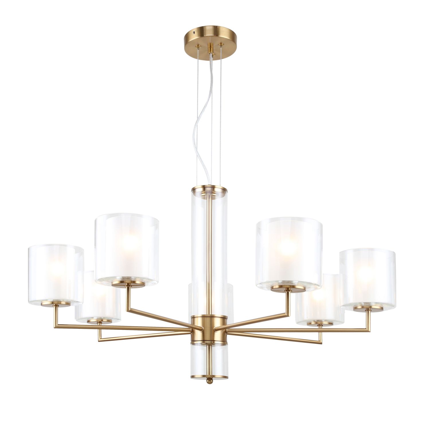 Оригинальные плафоны из двойного стекла – изюминка коллекции светильников Proper. Внутренние плафоны выполнены из матового белого стекла, внешние – из прозрачного стекла. Вторым оригинальным элементом коллекции является центральный шток с декоративным стеклянным цилиндром. Крепление на тросах позволяет регулировать высоту. В коллекцию входит подвесная люстра и настенный светильник в двух цветах: латунь и жемчужночерный.