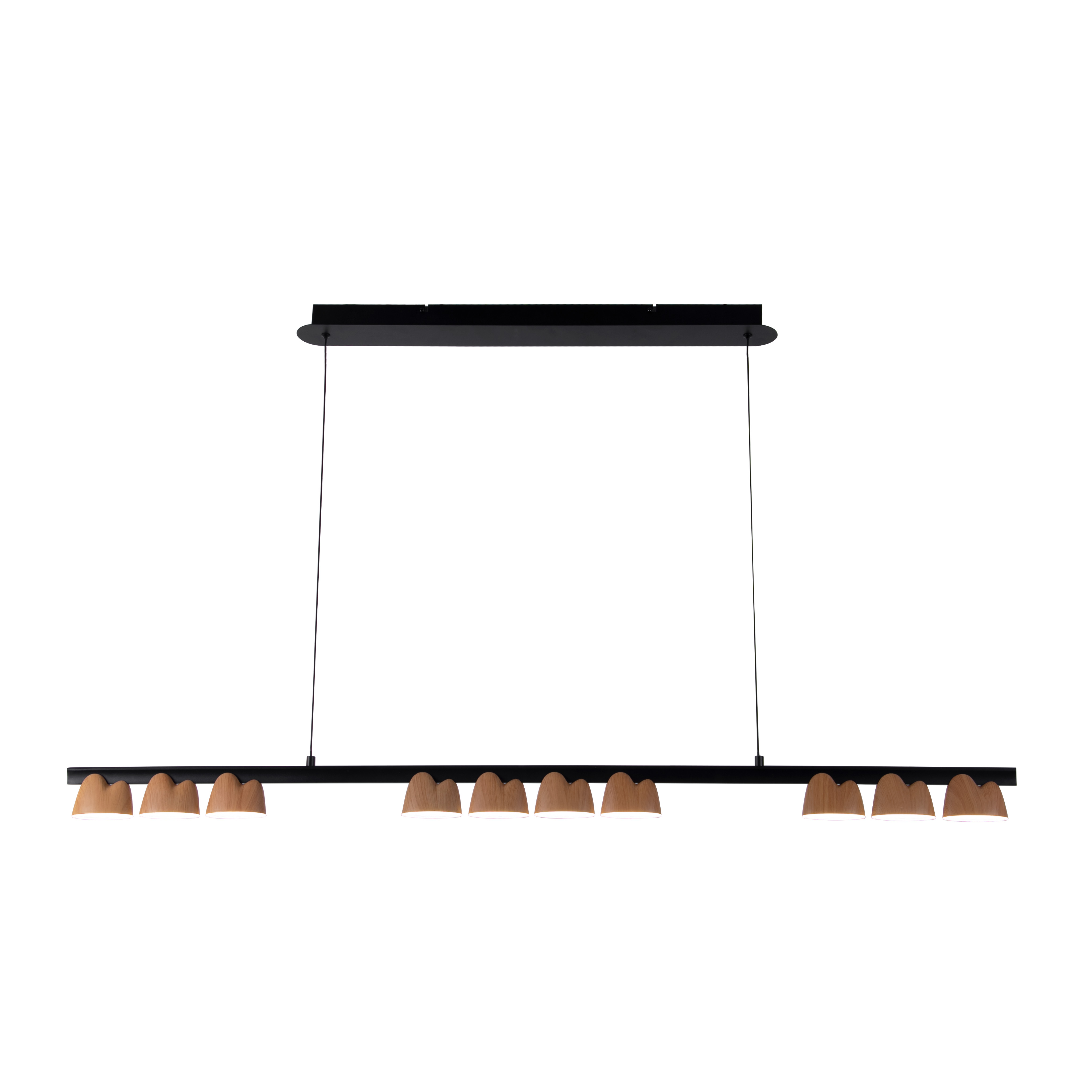 Коллекция Interline — это эффектное сочетание черной матовой арматуры и необычных плафонов цвета дерева, передающих его рисунок и структуру. Контраст материалов делает дизайн люстр одновременно строгим и уютным, что позволяет им гармонично вписываться в любой интерьер, от классического до современного. Диффузор из прозрачного акрила с бриллиантовым узором создает игру света и тени, придавая люстрам особую магию и защищая глаза от яркого света.