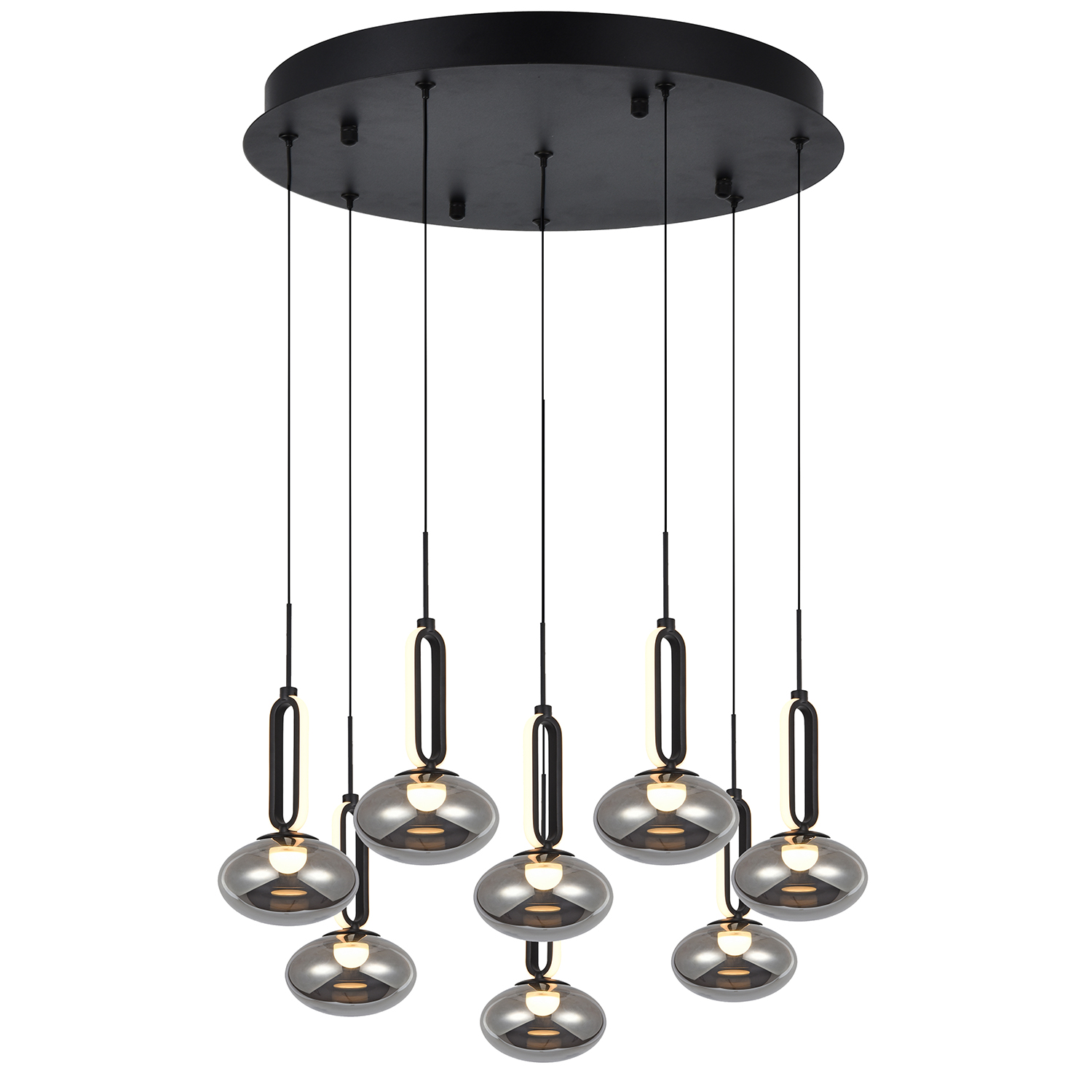 Коллекция Baron воплощает идеи синтеза и гармонии контрастов, где каждая деталь раскрывает свой характер. Необычные сочетания создают запоминающийся диалог между стеклянным выдувным плафоном со встроенным LED-модулем и декоративным элементом с LED-лентой по внешнему периметру. Черный матовый каркас контрастирует с зеркальной поверхностью дымчато-серого плафона, подчеркивая его блеск.