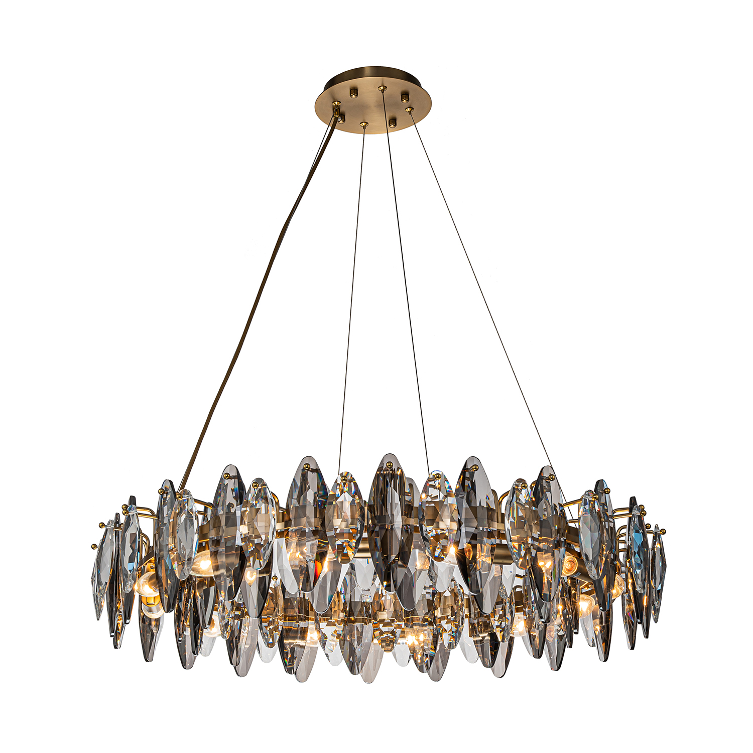 Glans – элегантная кольцевая коллекция, в которой используется прозрачный и серебристодымчатый хрусталь в ритмичном чередовании. Металлическая арматура светильника скрыта за хрустальными лепестками, создавая ощущение легкости и невесомости. К этой серии подходят универсальные крепления, с помощью которых можно создать кольцевые композиции из нескольких люстр.