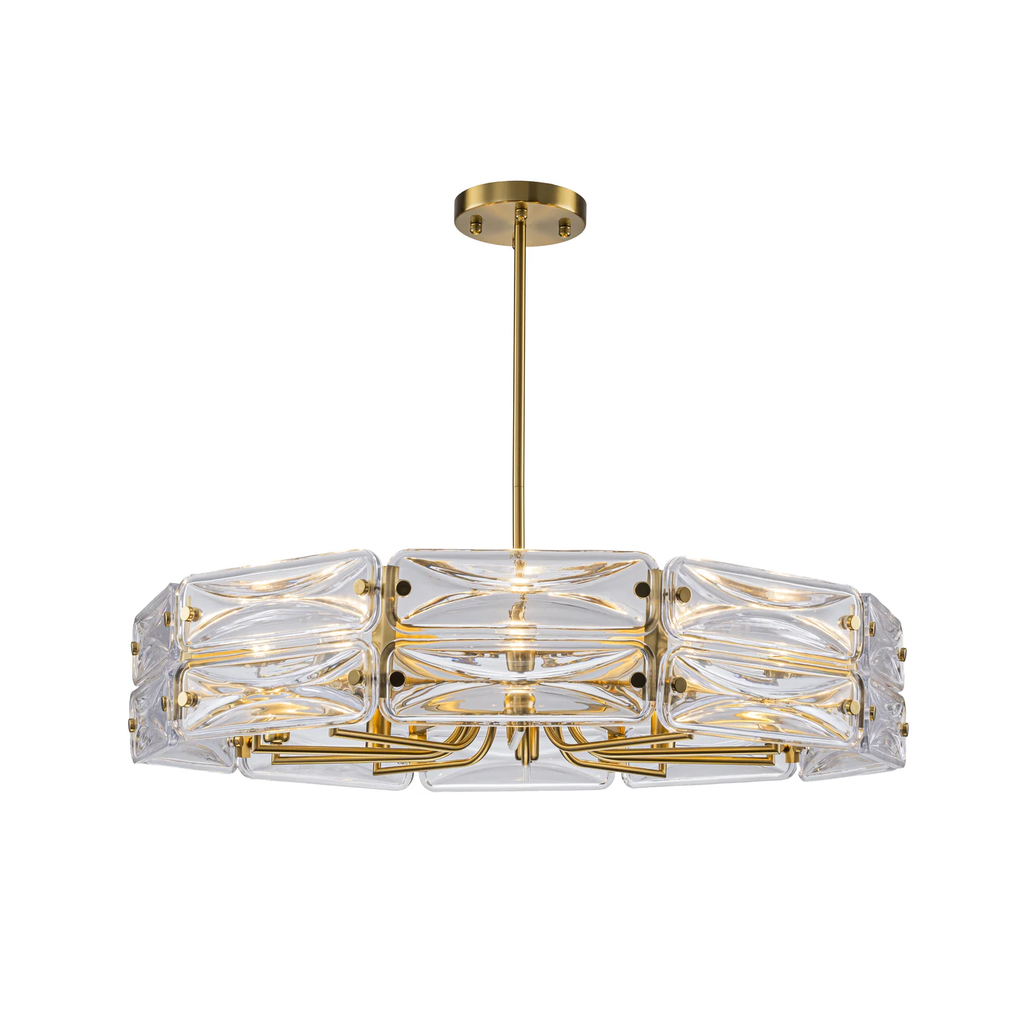 Светильники коллекции Glacies созданы, чтобы стать важной доминантой вашего интерьера. Люстры на штанге и бра имеют прочное основание из металла с гальваническим покрытием под латунь, украшенное массивными пластинами из прозрачного стекла со скругленными углами, которые, благодаря своей фактуре создают интересный световой эффект.