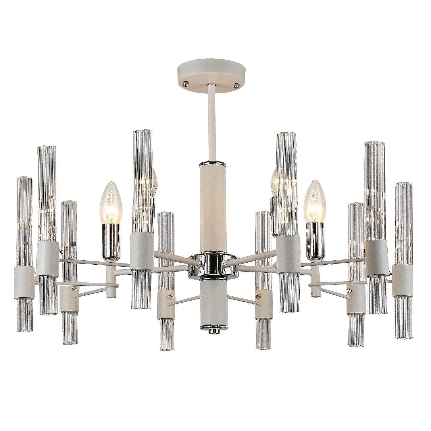 Современная коллекция Supreme в двух цветовых решениях декорирована трубками из рифленого стекла, расположенных перпендикулярно каждому рожку. Изюминкой светильника является хромированный патрон и акцентные детали на каркасе, сочетающиеся по цвету. Открытый источник света позволит добиться равномерного освещения комнаты, подойдет для помещений с небольшой высотой потолка.