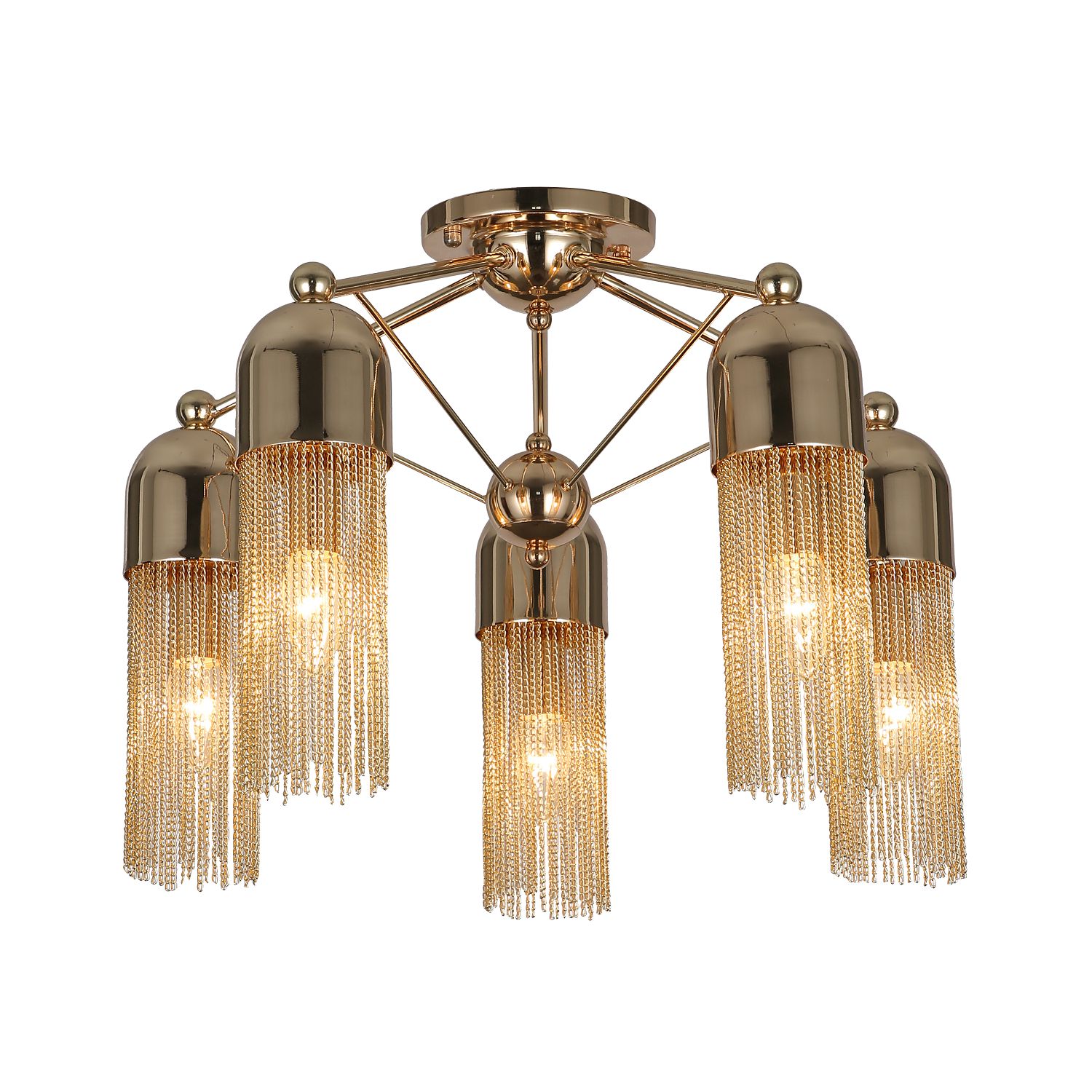 Zaria – коллекция потолочных люстр в цвете гальванического золота. Купольная форма плафона украшена каскадом тонких золотых цепочек, которые создают оригинальный световой эффект. Изысканная коллекция дополнена настенным светильником. Эти светильники в большей степени предназначены для помещений с невысокими потолками, их использование позволит визуально приподнять потолок. Одинаково эффектно светильники коллекции Zaria будут выглядеть как в классическом, так и в современном интерьере.