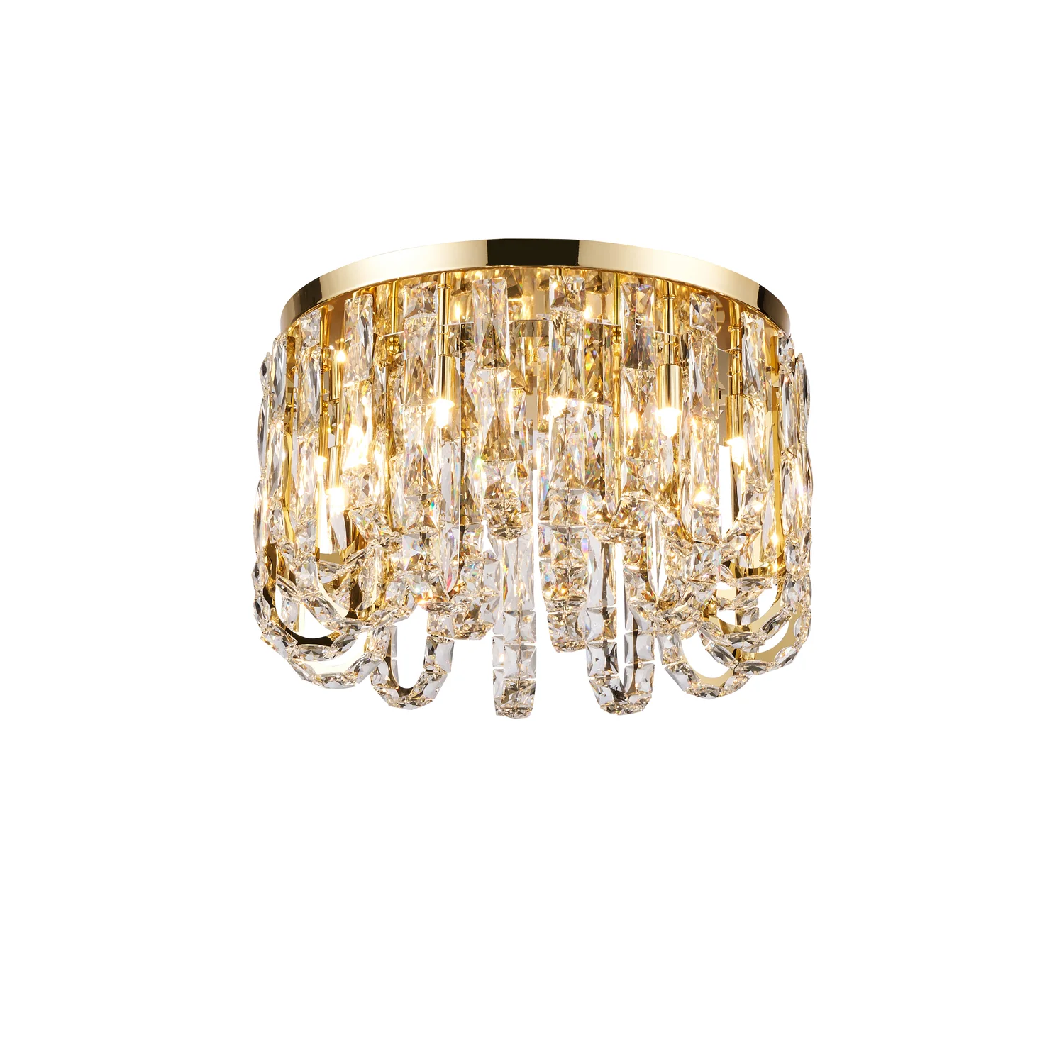 Коллекция Infinity включает в себя роскошные люстры и бра, золотой каркас которых украшен цепочками из скрепленных между собой пластин из прозрачного хрусталя высшего качества. Они крепятся к основанию с внешней и внутренней стороны и образуют арочки, которые создают эффект бликов и необычную игру света, что помогает подчеркнуть красоту и изысканность вашего интерьера.