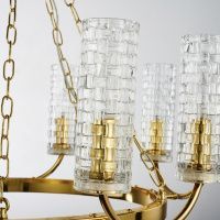 Изящные плафоны вытянутой цилиндрической формы - из выдувного молочного стекла. Свечение мягкое, красивое. Центральный шток декорирован элементом из натурального мрамора