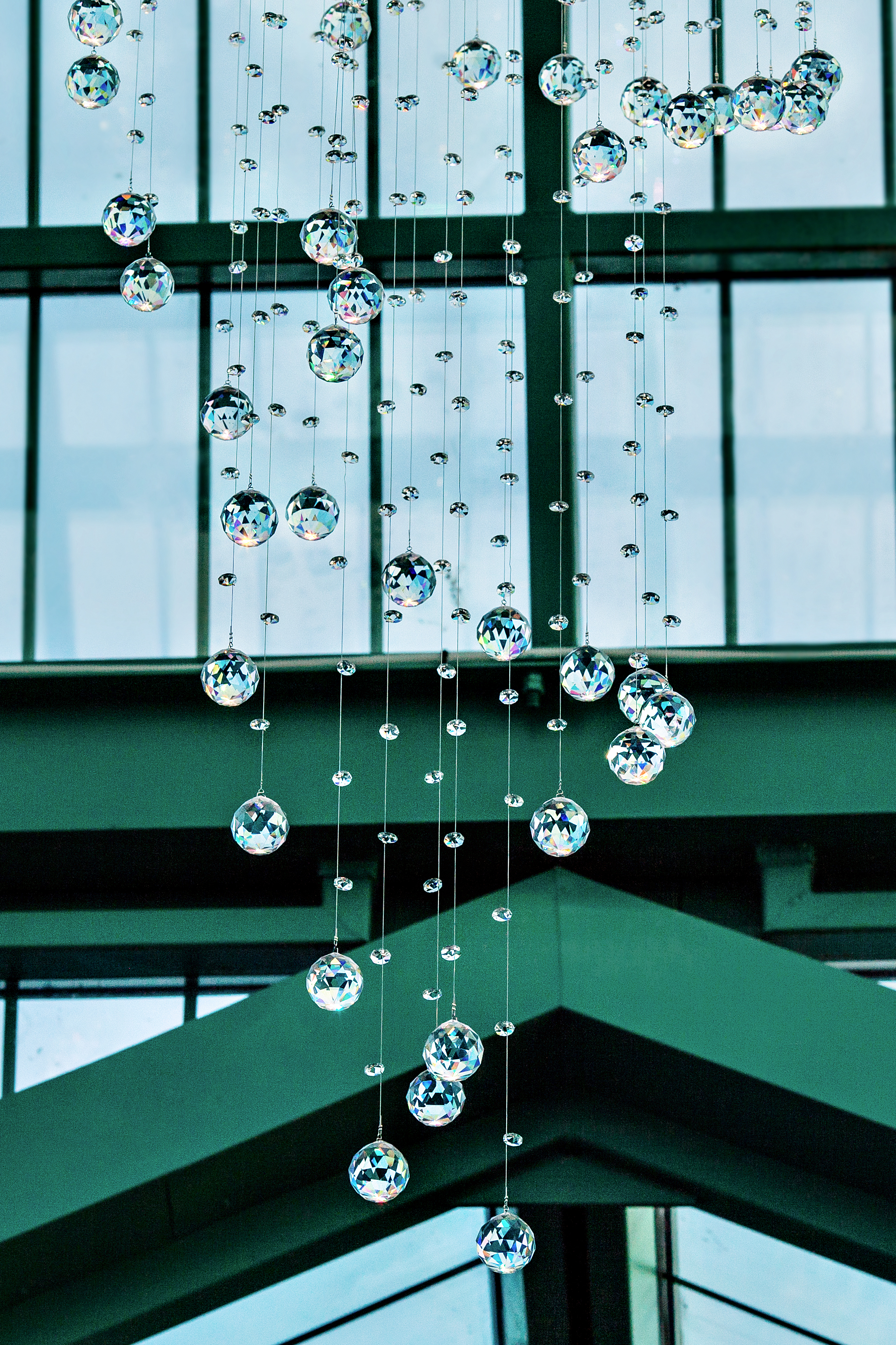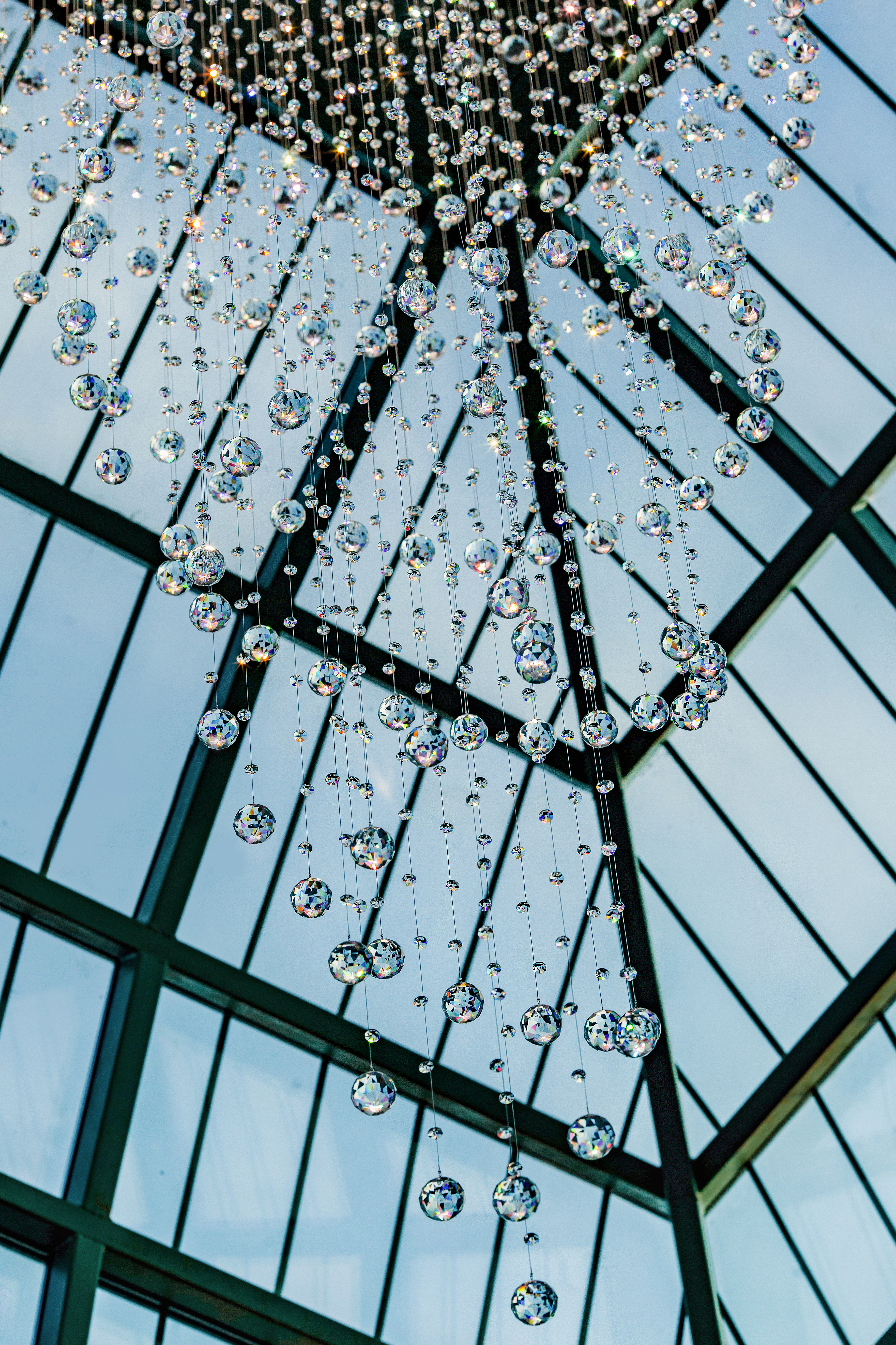 Эта люстра — настоящий световой водопад, отражающий естественный свет и добавляющий пространству ощущение воздуха и движения.