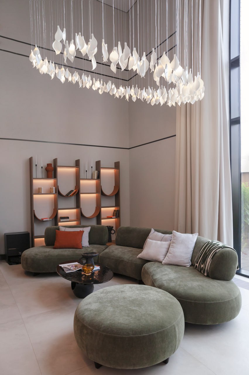 Для проекта дома «Агат» (https://t.me/domforest43/2107) компании «Дом Форест» (https://dom-forest.ru/) мы создали авторскую люстру по задумке дизайнера проекта. Каскад из более чем 200 нежных керамических лепестков молочно-белого цвета, подсвеченных светодиодными лампами, украсил гостиную дома.